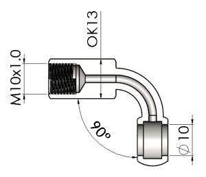 oko průtočné pr.10mm,závit M10x1,"F", úhel 90st.